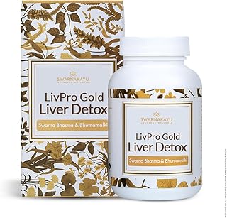 Liver Detox Supplements – 24K Swarna Bhasma (Gold Ash), Bhumyamalki, Triphala, Guduchi – Cleanses & Protects Liver, Fights Fatty Liver – Digestive Enzymes for Men & Women (30 Tablet)