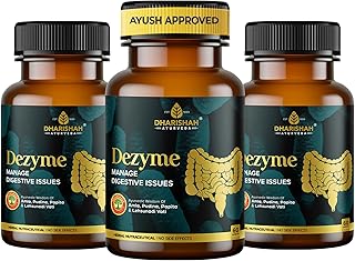 Dharishah Ayurveda Dezyme Capsules for Digestion & Acidity Relief – 180 Tablets | Ayurvedic Medicine for Gastric Problems, Indigestion, Heartburn, Gas & Bloating with Amla, Pudina & Papita