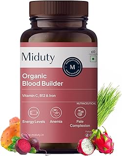 Miduty Organic Blood Builder | Anemia Supplement with Green Amla, Barley Leaves, Beet Root – | Iron Supplement | Hemoglobin Booster | Pack – 60 Capsules