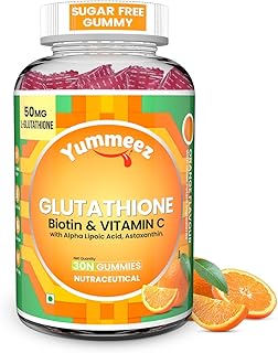 NATURYZ L-Glutathione with Biotin 2-in-1 Gummies | Vitamin C, Vitamin E & Astaxanthin | Skin Glow, Brightening, Depigmentation, Hair Growth for Men & Women | No added sugar- 30 Gummies (Orange)