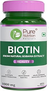 Pure Nutrition Biotin 60 Tabs with Sesbania Grandiflora, Bamboo Shoot, Moringa Leaf, Amla Extracts & Multiminerals for Hair Growth, Glowing Skin & Strong & Healthy Nails