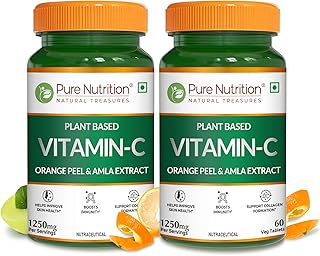 Pure Nutrition Naturals Plant-Based Vitamin C,120 Veg Tabs With Amla & Orange Peel Extract|Boosts Immunity & Skin Glow|Supports Collagen Formation & Fights Free Radicals For Healthy Skin