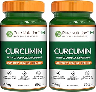 Pure Nutrition Curcumin C3 Complex Supplement – 120 Caps (60×2) | Anti Inflammation Turmeric Supplements 760mg with Black Pepper, Piperine, Amla & Sunthi | High Absorption Inflammatory Support (760mg)