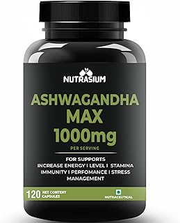 Ashwagandha Max 1000 mg KSM-66 For Stress Relief | Rejuvenates Mind & Body | Improves Strength & Energy | Support strength & energy | Deep Sleep & Rest | 120 capsules