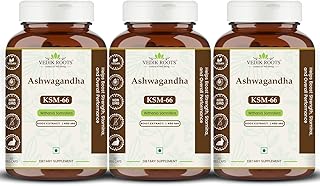 Ashwagandha KSM-66 Capsules (450 mg) | 100% Pure Root Extract | Extra Strength Natural Formulation | Help Mental Clarity and Focus| Support to Reduces Stress and Anxiety – 60 Vegetarian Capsules (Pack of 1, 60 Caps)