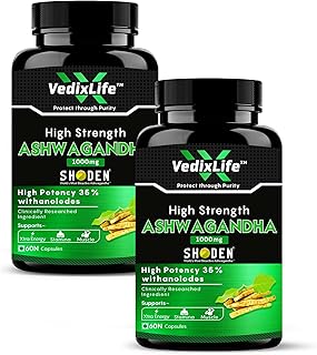 Ashwagandha Root Extract (Shoden®) – Clinically Proven 35% Withanolide Glycosides, Natural Stress Relief, Brain Support, Memory Booster, Focus & Mind Clarity Supplement | 60 Capsules (Pack Of 2)