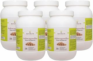 Ayurvedic Life Ashwagandha Tablets 500mg Ashwagandha root powder & extract with 0.8% Alkaloids & 0.5% Withanaloids 700 Capsule Pack of 5 | Stress Relief | Strength | Immunity support