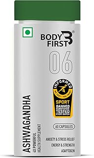 Body First KSM-66 Ashwagandha 500mg Capsule, Informed sports certified, Energy and Immunity Booster, Muscle Strength & Recovery, 60 Veg Capsules