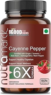 Cayenne Pepper 6X Capsules 1000mg with Ashwagandha, Turmeric & Beetroot | For Healthy Heart | Support Metabolism, Energy, Weight Management & Joint Support | (90 Count (Pack of 1))