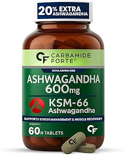 Carbamide Forte Ashwagandha KSM66-600 mg I KSM 66 Ashwagandha Supplements Support Stress Management & Muscle Recovery I ashwagandha tablets for Men & Women – 60 Tablets