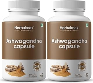 Herbal Max Ashwagandha General Wellness Capsules – 60 Veg Capsules (Pack of 2, 800mg) | Ayurvedic Supplement for Stress Relief, Performance, Immunity & Energy