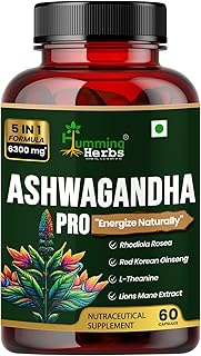 Humming Herbs Ashwagandha Pro – High Potency Adaptogen Blend with Rhodiola Rosea, Red Korean Ginseng, L-Theanine, & Lion’s Mane – Natural Stress Relief & Cognitive Support(60 Caps)