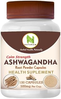 NATURAW Ashwagandha (120 Capsules) Root Powder Capsules 500 Mg �Calm Strength� Health Supplement