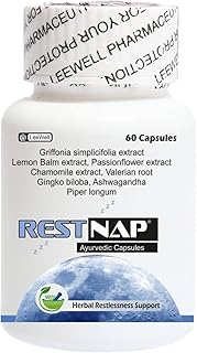 Restnap Ayurvedic Sleep Support | Herbal Natural Sleeping pills | Support Stress, Fatigue, Tension, Brain Health Calming, Recovery & Nerve Relaxation | (5 HTP) Griffonia simplicifolia, Lemon Balm, Passion flower, Chamomile, Valerian root, Gingko biloba, Ashwagandha, Piper longum – 60 Capsules