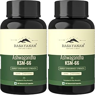 Rasayanam Ashwagandha Ksm-66 (500 Mg) Pack Of 2 | Extra Strength Natural Formulation Support Strength & Energy Withania Somnifera Extract | 120 Veg Capsules for Men & Women