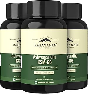 Rasayanam Ashwagandha Ksm-66 (500 Mg) Pack Of 3 Extra Strength Natural Formulation Support Strength & Energy Withania Somnifera Extract – 180 Capsules