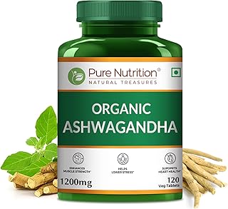 Pure Nutrition Organic Ashwagandha Tablets | 120 Veg Tablets | Supports Stress Relief, Sleep, Fertility, Immune Health, Vitality & Strength | Natural Adaptogen for Men & Women | Promotes Energy & Overall Wellness | Ayurvedic Supplement