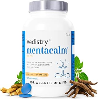 Vedistry Mentacalm Tablets | Ayurvedic Stress & Anxiety Relief | Ayurvedic Support for Calm Mind, Focus & Emotional Balance | Clinically Proven to Reduce Stress & Anxiety – 90 Tablets (Pack of 1)