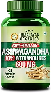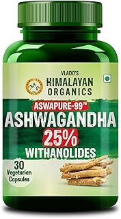 Vlado’s Himalayan Organics Ashwagandha -25 % Withanolides with Maximun High Potency – 600MG – Highly Concentrated & Third-Party Lab Tested / Clinically Proven – Ayurvedic Supplement – Focus, Mood Support, Increase Energy, Strength – Enhanced Mood & Performance I 1st in India – 30 Capsules