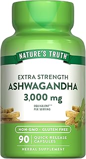 Ashwagandha Capsules | 3000mg | Extra Strength | 90 Count | Non-GMO & Gluten Free | Ashwagandha Root Supplement with Black Pepper | by Nature’s Truth