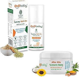 OYO BABY Tummy Roll On 40ml for Gastric & Colic Relief | After Bite Turmeric Balm 25g – 100% Ayurvedic, Insect & Mosquito Bite Protection