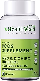 Health Veda Organics PCOS Support Supplement for Women | Myo-Inositol + D-Chiro Inositol 40:1 | 60 Plant-Based Veg Tablets | Support Regular Menstruation