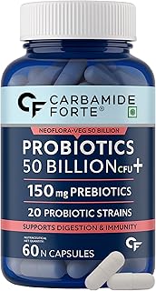 Carbamide Forte Probiotics Supplement 50 Billion CFU Gut Health Supplements with Probiotic | Gut Cleanse with Prebiotics and Probiotics – 60 Capsules