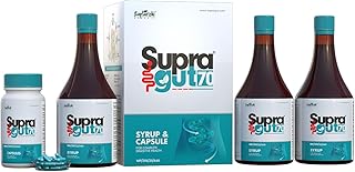 Supra Gut 70 Ayurvedic Gut Health Pack – (3 * 250 ml Herbal Syrup) + 140 Herbal Capsules – Relief from Gas, Acidity, Bloating & Constipation