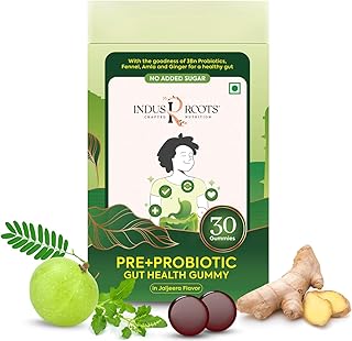 Sugar Free Gut Health Gummies For Gut Cleanse & Digestion, Pre & Probiotic Supplement, Helps With Bloating, Gas & Constipation – Jaljeera Flavor, 30 Gummy (Pack of 1)