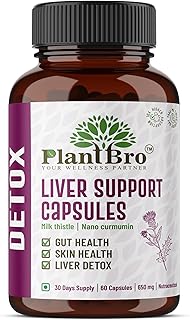 PlantBro Liver Support Capsules – Milk Thistle & Nano Curcumin (650mg) | Herbal Detox & Gut Health Supplement | Supports Liver Cleanse, Skin Health & Immunity | 60 Vegetarian Capsules