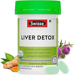 Swisse Ultiboost Liver Detox Supplement with High Strength Milk Thistle (Silymarin Marianum) – 5000 mg, Turmeric – 3000 mg & Choline – 82.5 mg for Complete Liver Support, Cleansing and Detox – 60 Tablets (Vegan Supplement)