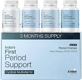 WOMN Cyclical Multivitamin for Women, Period Relief & PMS Support, Supports Hormonal Balance, Cramps Comfort, Mood, Energy & Bloating, Iron, Magnesium, CoQ10 & 63+ Nutrients, 3 Months Supply – 84 Tablets