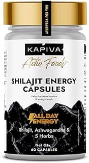 Kapiva Shilajit/Shilajeet Energy 60 Capsules | Made with 100% Pure Shilajit | For All Day Energy & Stamina | With Ashwagandha,Gokshura | Contains 12 Vitamins & 13 Minerals