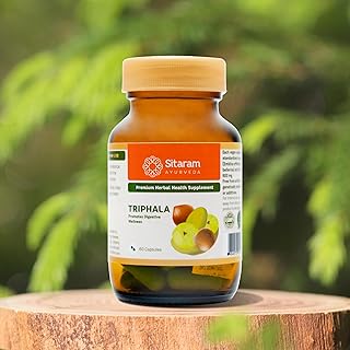 Sitaram Ayurveda Triphala Capsules 60 Nos | More Potent 600 MG Extract (other brands – 250 MG) | Triphala Capsules For Healthy Eyes | Keeps Away Greys & Wrinkles | Bowel Wellness | Improves Digestion.