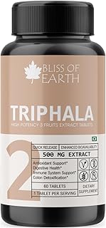 Bliss of Earth High Potency Triphala Extract Tablets 500mg With Quick Release & Enhanced Bioavailability, Digestive Health & Constipation Relief Support, 60 Tablets
