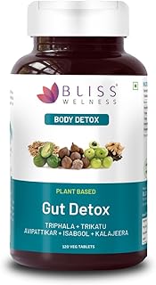 Bliss Welness Gut Detox | Trikatu Isabgol Triphala Avipattikar Kalajeera | Health Cleanse Purify | Stomach Cleanse Purify Digestion Metabolism Toxin Removal Acidity Gas Control Supplement – 120 Vegetarian Tablets