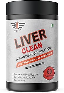 GNR Grow Fit Liver Clean Capsules – Milk Thistle & Turmeric Extract | Advanced Liver Detox Formula | Supports Liver Health, Boosts Metabolism & Energy – 60 Veg Capsules