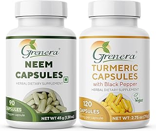 Grenera Neem Capsules 90 no, Turmeric Capsules 120 nos | Made with pure neem leaf powder and turmeric powder, black pepper powder