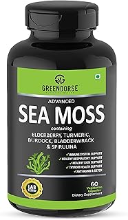 GREENDORSE Irish Sea Moss Vitality Capsules 7 In1 Formula-Gut Cleanse,Immunity,Joint & Thyroid Support-With Spirulina,Turmeric,Bladderwrack,Burdock|Superfood High In 90+ Minerals-60 Veg Capsules