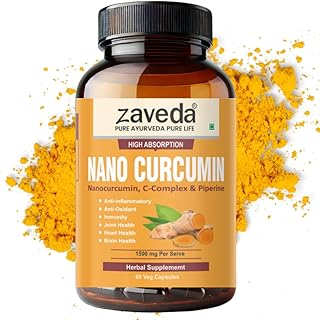 Nano Curcumin Plus 1500mg | Pure Nano Curcumin with Biopiperine | Advanced absorption formula| Ayurvedic Antioxidant & Anti-inflammatory – Skin, Heart | Joint Support | C Complex | Veg Caps 60