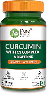 Pure Nutrition Curcumin C3 Complex Supplement – 60 Capsules | Anti Inflammation Turmeric Supplements with Piperine, Amla & Sunthi | High Absorption Inflammatory Support (760mg)
