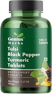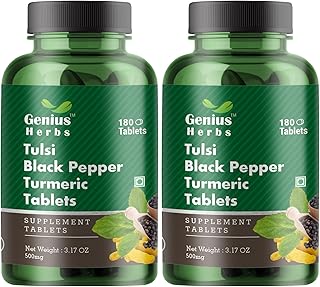 Tulsi Black Pepper Turmeric Tablets – 500mg | Support Overall Health | Helps Joint Health & Flexibility | Promotes Cognitive Function | Pack of 2