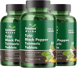Tulsi Black Pepper Turmeric Tablets – 500mg | Support Overall Health | Helps Joint Health & Flexibility | Promotes Cognitive Function | Pack of 3