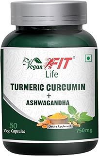 Turmeric Curcumin with Ashwagandha 50 Capsules 750mg Herbal Blend with 95% Curcuminoids with Piperine Supports Heart, Joint & Immune Health Reduces Stress & Boosts Testosterone Level