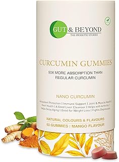 Turmeric Curcumin Gummies – Anti Inflammatory Supplement for Adults, Liver Cleanser, Good for Skin & Brain Health, Enhances Focus, Lowers Bad Cholesterol, Mango Flavour, 60 Count