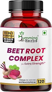 Humming Herbs Beet Root Complex 1780mg with Ashwagandha, L-Citrulline, NAC, CoQ10, B12 & D3 | 11-in-1 Extra Strength Formula | 120 Veg Capsules | 60 Days Supply | Non-GMO