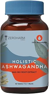 ZEROHARM Holistic Ashwagandha Tablets | Pure Organic Ashwagandha Root Extract Supplement | Nano Formulated for Mind & Body Wellness | High Strength & Energy | 60 Veg Tablets