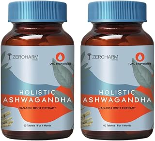 ZEROHARM Holistic Ashwagandha Tablets | Organic Herbal Supplement | Ashwagandha Root Extract | Supports Stress Relief, Energy & Mental Wellness | Nano-Enhanced Formula | 60 Veg Tablets – 2 Pack
