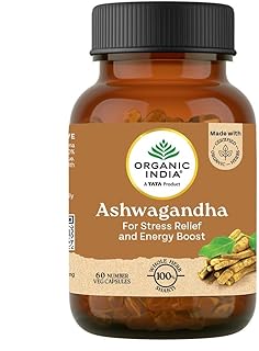 A TATA Product – Organic India Pure Ashwagandha Root Capsules – 60 Veg Caps (400mg), For Vitality & Relieves Stress, Naturally Boosts Energy & Stamina, Improves Immune System, GMP & NPOP Certified